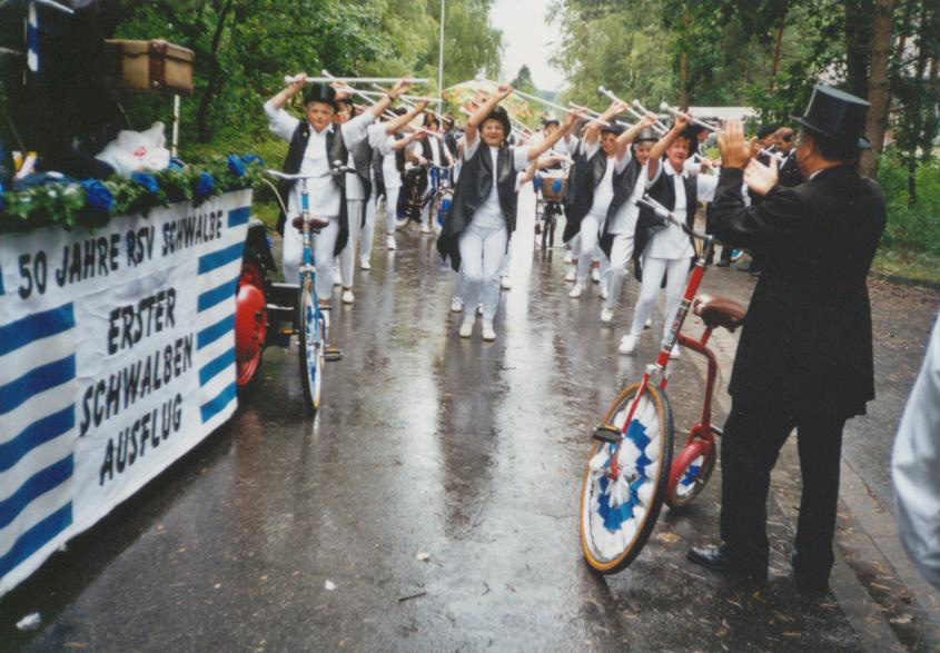 Der Verein wurde am 13. Januar 1950 von acht jungen Männern gegründet. Im ersten Jahrzent wurde an mehreren Straßenrennen teilgenommen. Die Vereinsgründer wollten, aber auch das Kunstradfahren populär machen. Trotz zu niedriger Deckennähe wählten sie den Saal des „Heidenkrug“ als Trainingshalle. Auf normalen Tourenrädern wurden hier die ersten Trainingseinheiten absolviert. Im November 1950 führte Schwalbe die erste Saalsportübung durch. Diese fand großen Zuschauerzuspruch mit dem Ergebnis, dass sich viele neue Mitglieder dem RSV anschlossen. Auch Radball kam als neue Sportart hinzu. Ein Höhepunkt der Vereinsgeschichte war der Gewinn der NRW-Landesmeisterschaften im Sechser Kunstradfahren der Männer.